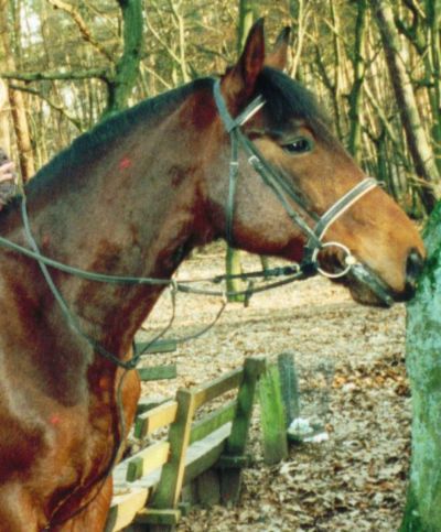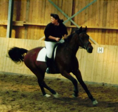 Don war ein unerzogener Sturkopf, der sehr wohl wußte, wie stark er war und daß er im Zweifelsfall immer der stärkere war. Er war mit 6 Jahren erst gelegt worden, zwei Hengsleistungsprüfungen gegangen und wegen "mangelnder Kooperation" beim Fremdreitertest durchgefallen...