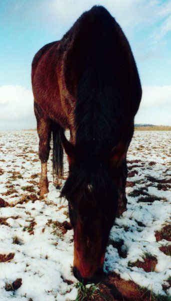 Die Konsequenz war dann, daß man sie für ein Jahr auf eine Koppel (da wo Don auch ist) stellte. Dieses Jahr hat ihr unglaublich gut getan, sie war wieder (meistens J ) klar im Kopf und war "erwachsen" geworden. (Abgesehen davon, daß sie bildhübsch und ein "echtes Brett von einem Pferd" wurde.)